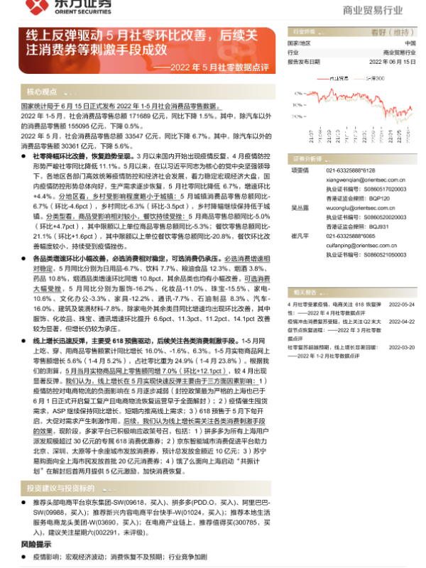 【东方证券】【20220615】商业贸易行业2022年5月社零数据点评-18页