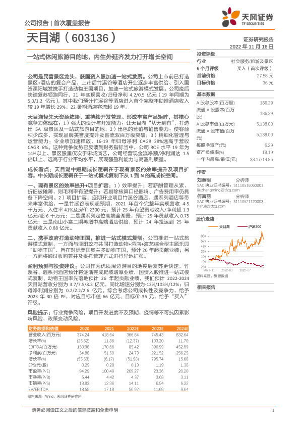 休闲旅游 天目湖 投资评级 旅游行业分析 景区开发