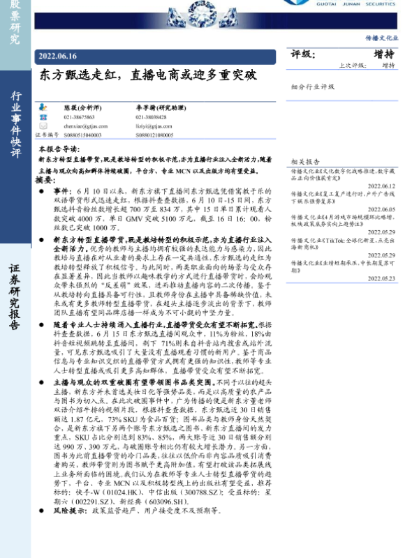 【国泰君安证券】【20220616】东方甄选走红,直播电商或迎多重突破-5页