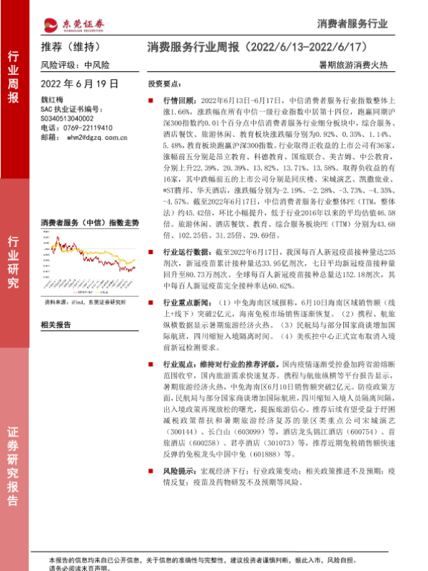 【东莞证券】【20220619】消费服务行业周报:暑期旅游消费火热-9页
