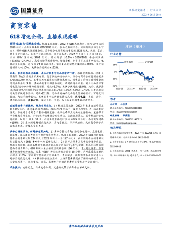 【国盛证券】【20220620】618增速企稳,直播表现亮眼-3页