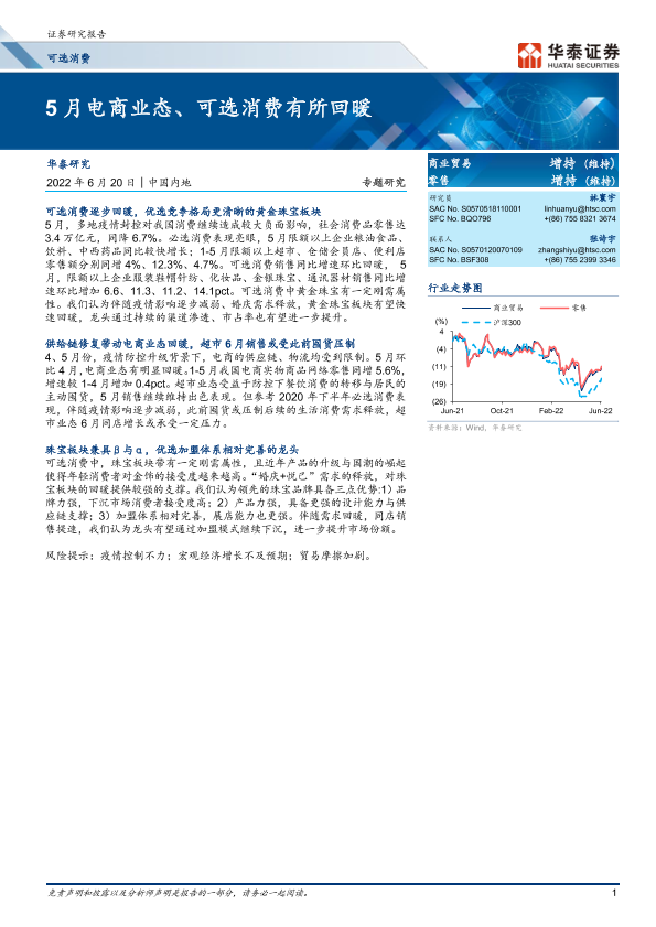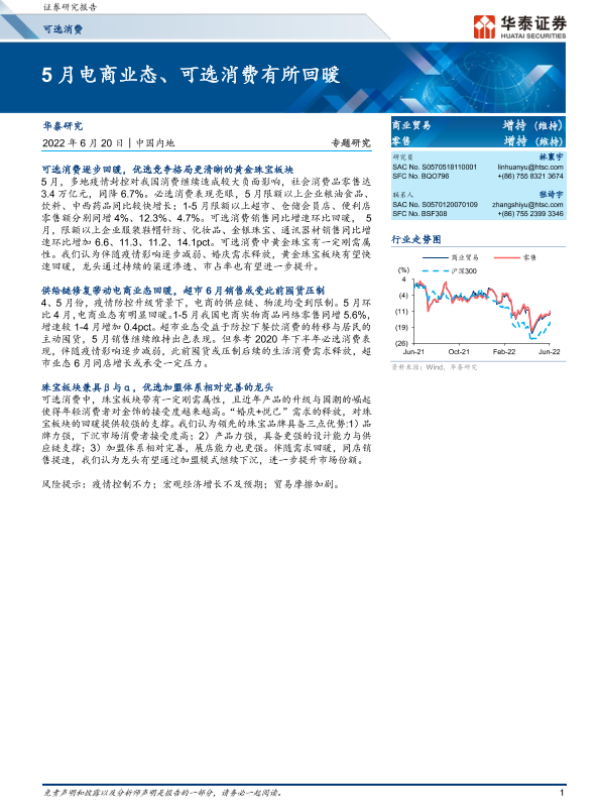 【华泰证券】【20220620】5月电商业态、可选消费有所回暖-8页