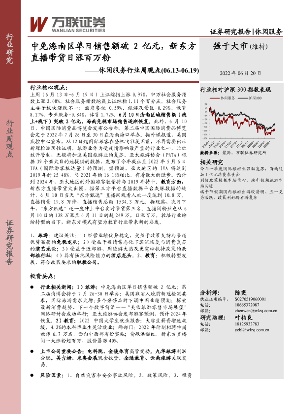 【万联证券】【20220620】休闲服务行业周观点:中免海南区单日销售额破2亿元,新东方直播带货日涨百万粉-10页