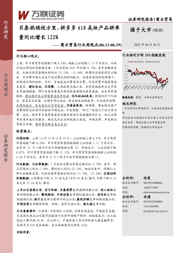【万联证券】【20220620】贝泰妮领投方里,拼多多618美妆产品拼单量同比增长122%-11页