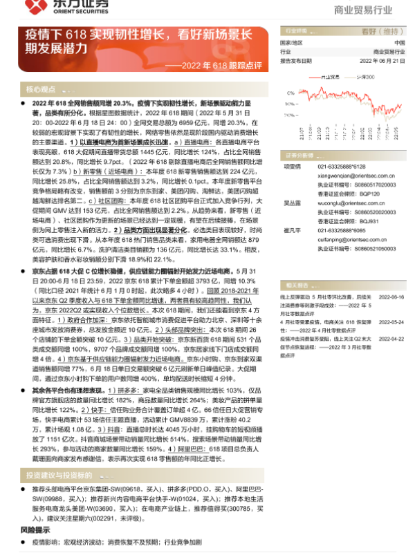 【东方证券】【20220621】2022年618跟踪点评-疫情下618实现韧性增长,看好新场景长期发展潜力-8页