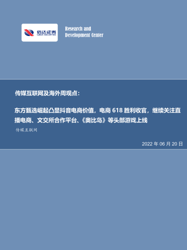 【信达证券】【20220620】东方甄选崛起凸显抖音电商价值,电商618胜利收官,继续关注直播电商、文交所合作平台、《奥比岛》等头部游戏上线-17页