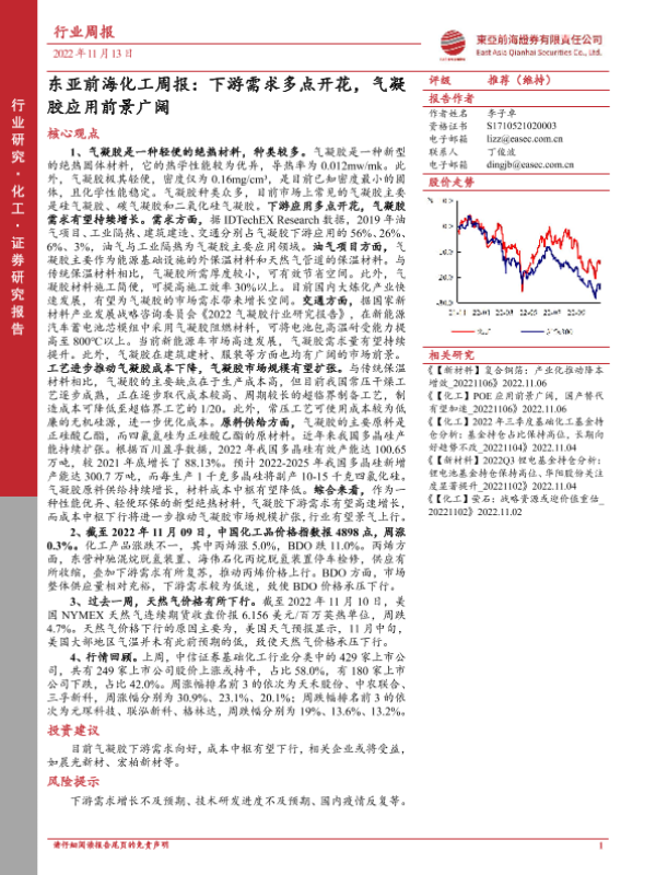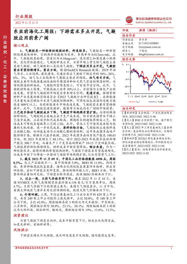 【东亚前海证券】【20221113】东亚前海化工周报:下游需求多点开花,气凝胶应用前景广阔-22页