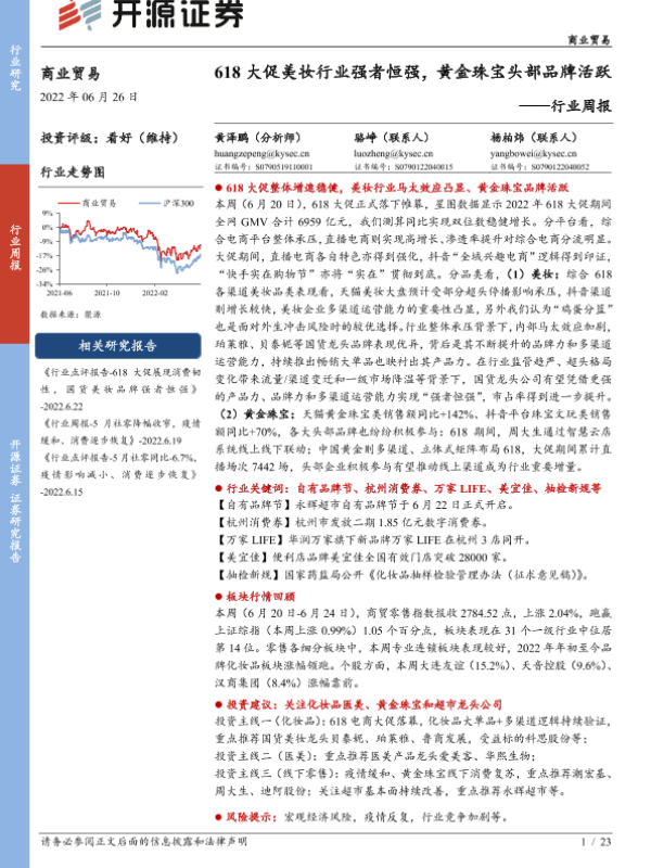 【开源证券】【20220626】商业贸易行业周报:618大促美妆行业强者恒强,黄金珠宝头部品牌活跃-23页