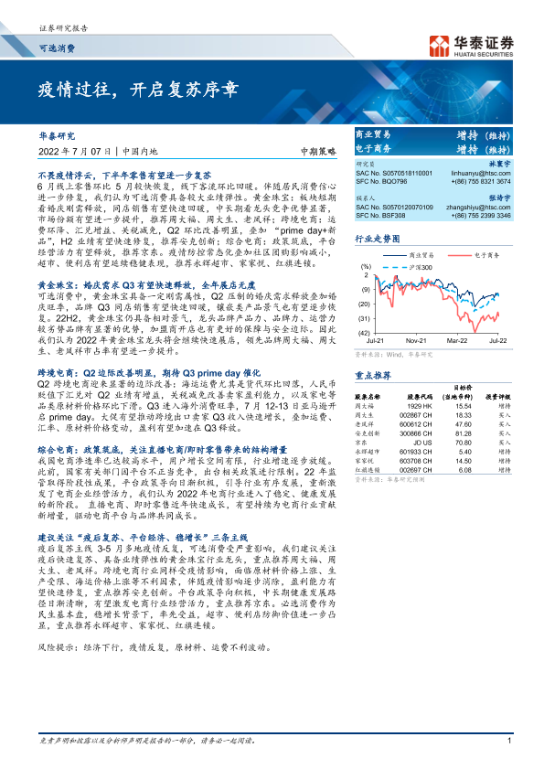 可选消费 疫情复苏 综合电商 跨境电商 黄金珠宝