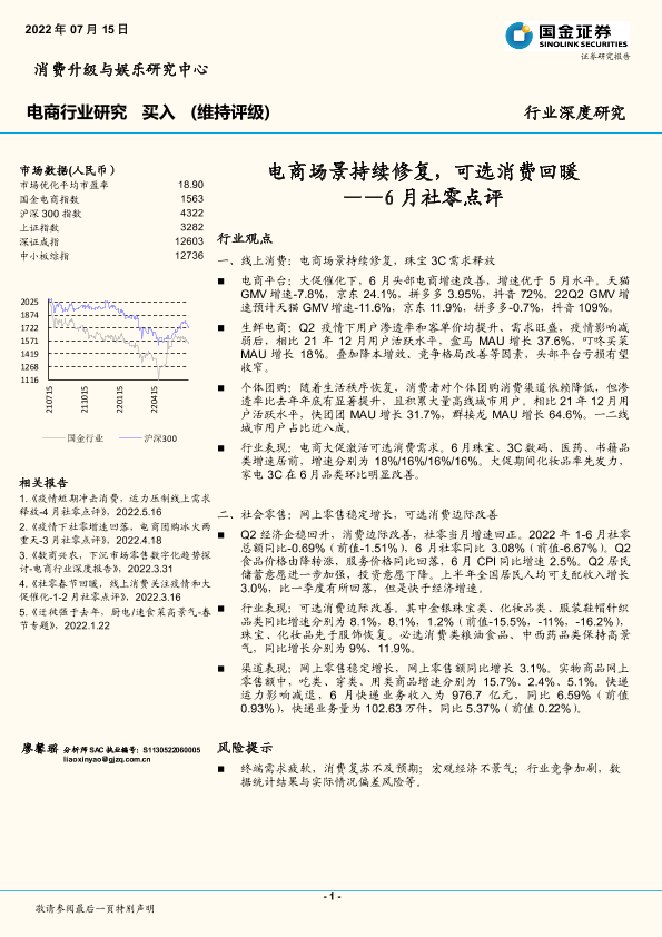 【国金证券】【20220715】电商场景持续修复,可选消费回暖——6月社零点评-16页