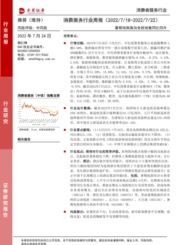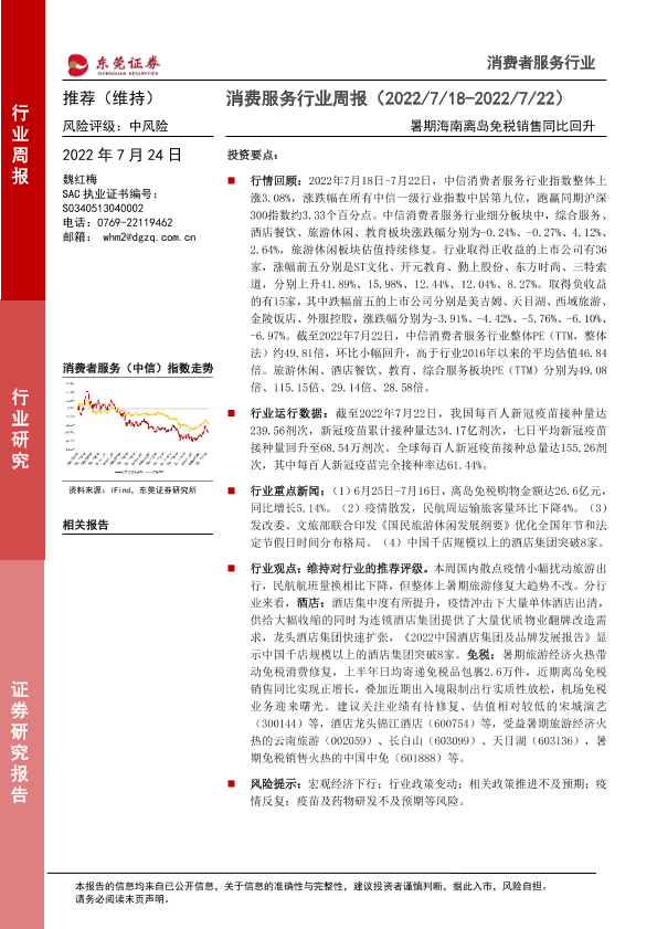 【东莞证券】【20220724】消费服务行业周报:暑期海南离岛免税销售同比回升-10页