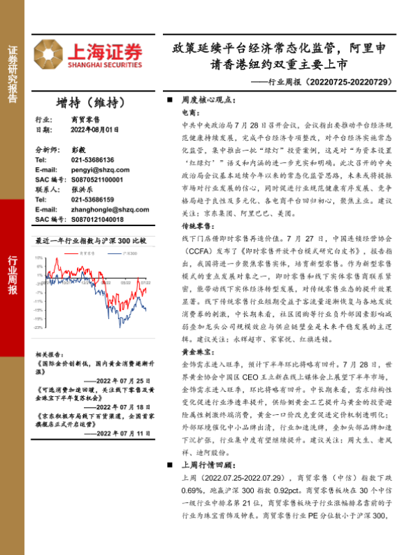 【上海证券】【20220801】商贸零售行业周报:政策延续平台经济常态化监管,阿里申请香港纽约双重主要上市-12页