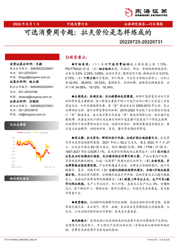 可选消费 市场趋势 拉夫劳伦 行业周报 证券分析
