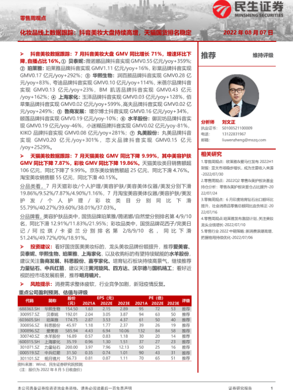 【民生证券】【20220807】零售周观点:化妆品线上数据跟踪-18页