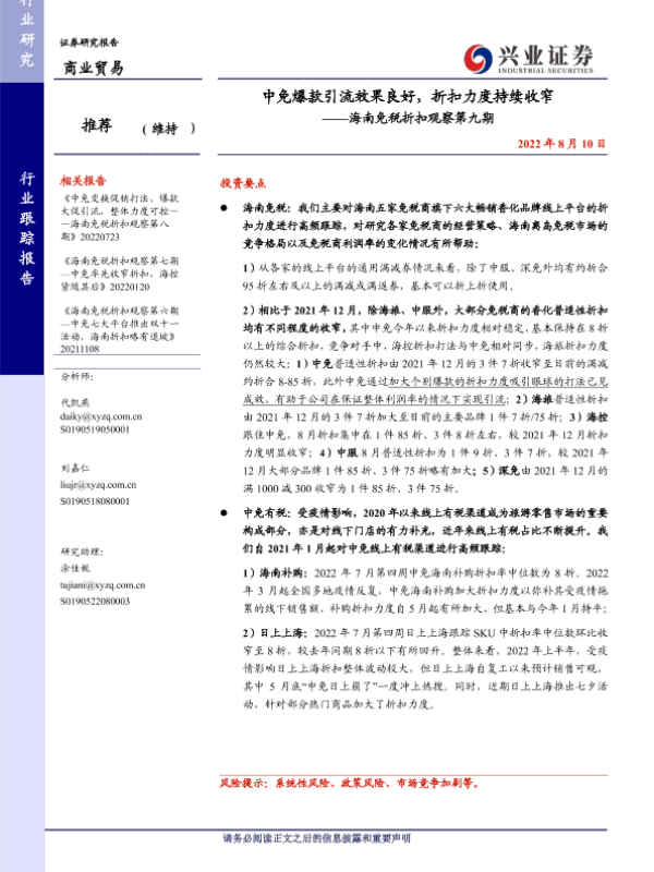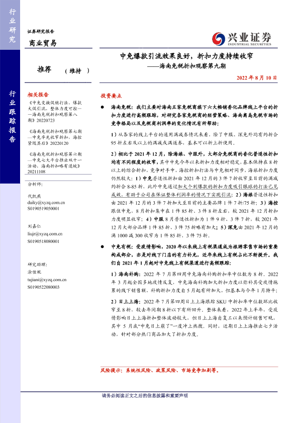【兴业证券】【20220810】中免爆款引流效果良好,折扣力度持续收窄-13页