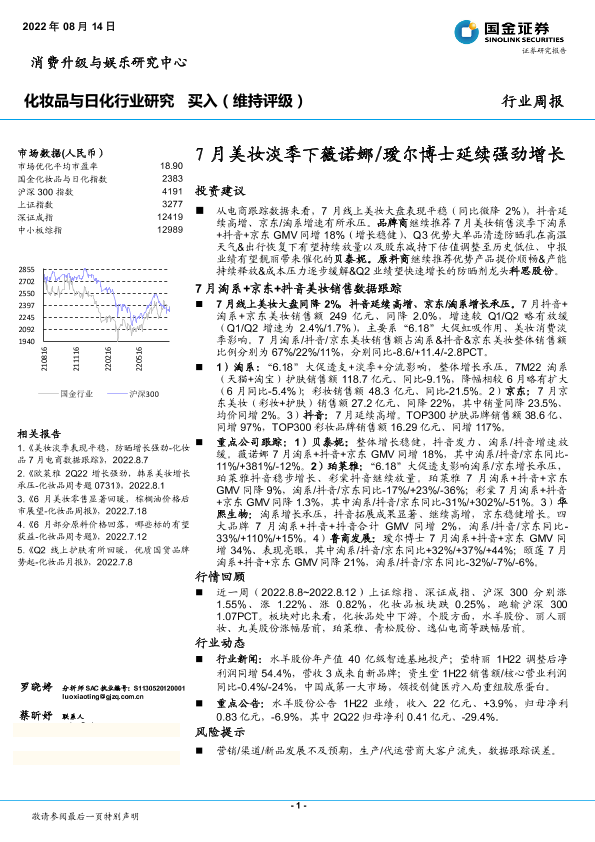 【国金证券】【20220814】7月美妆淡季下薇诺娜 瑷尔博士延续强劲增长-13页