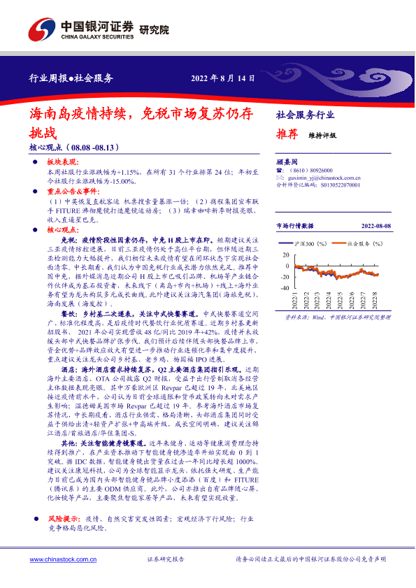 【银河证券】【20220814】社会服务行业周报:海南岛疫情持续,免税市场复苏仍存挑战-14页