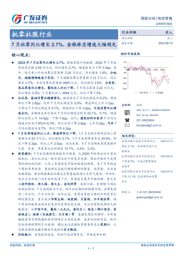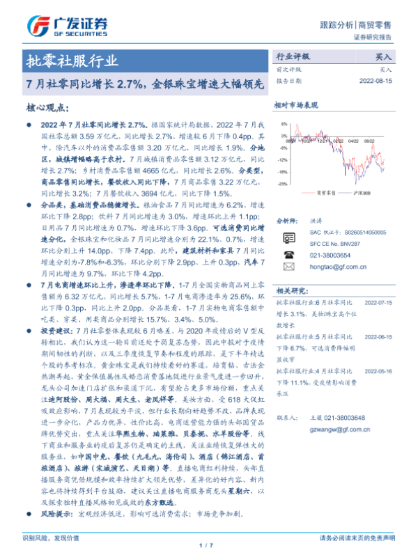 【广发证券】【20220815】7月社零同比增长2.7%,金银珠宝增速大幅领先-7页