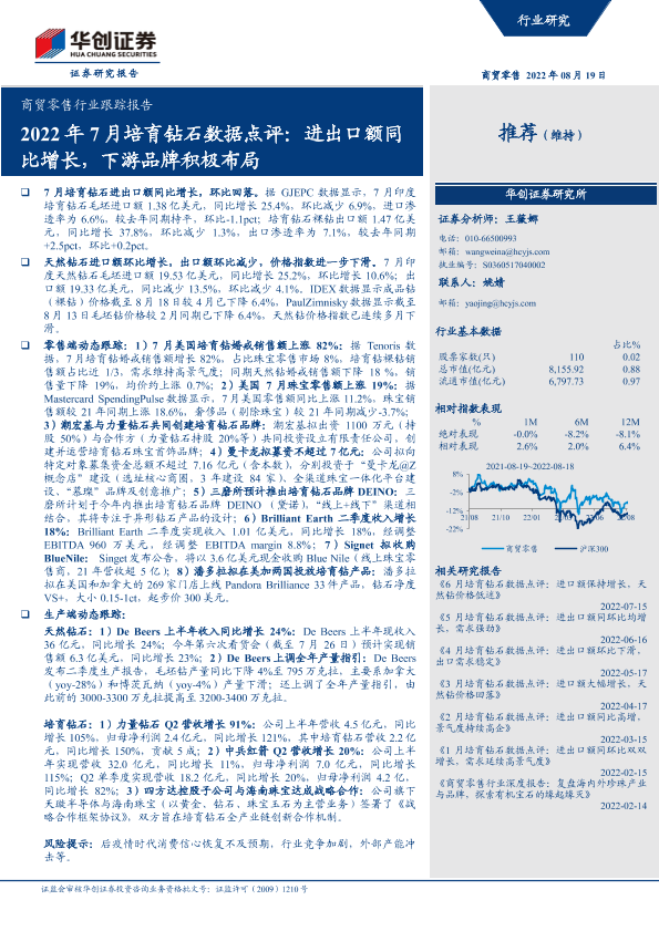 【华创证券】【20220819】2022年7月培育钻石数据点评:进出口额同比增长,下游品牌积极布局-10页
