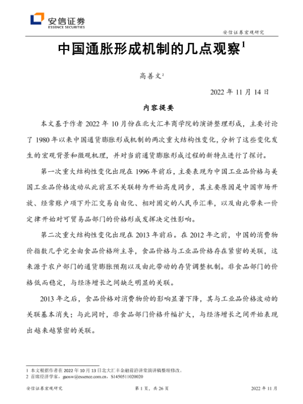 【安信证券】【20221114】中国通胀形成机制的几点观察-26页