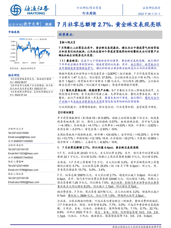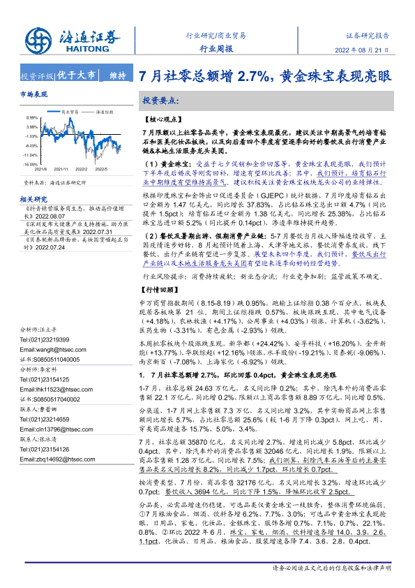 【海通证券】【20220821】7月社零总额增2.7%,黄金珠宝表现亮眼-6页