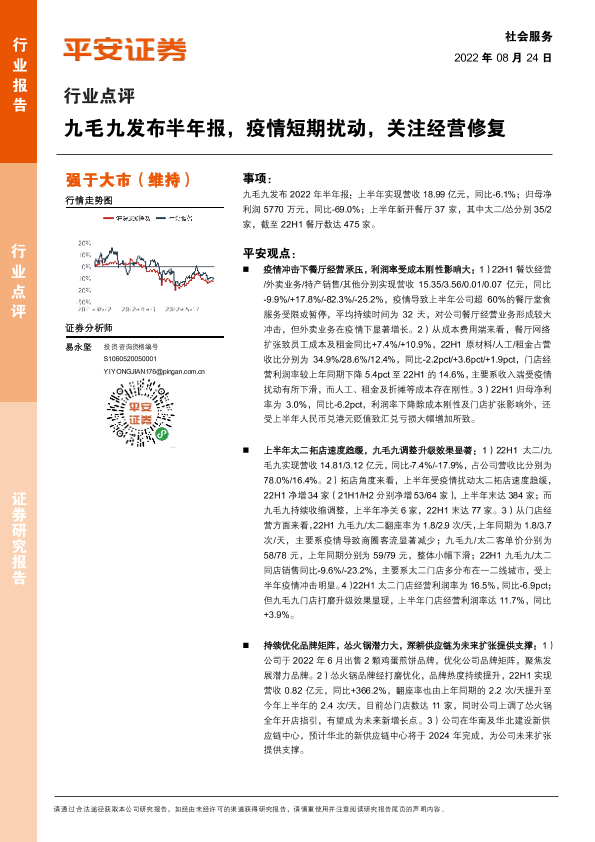 【平安证券】【20220824】社会服务行业点评:九毛九发布半年报,疫情短期扰动,关注经营修复-3页