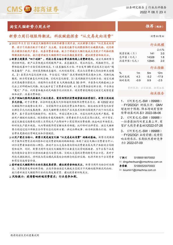 【海通证券】【20220823】淘宝天猫新势力周点评:新势力周引领服饰潮流,科技赋能探索“从交易走向消费”-2页