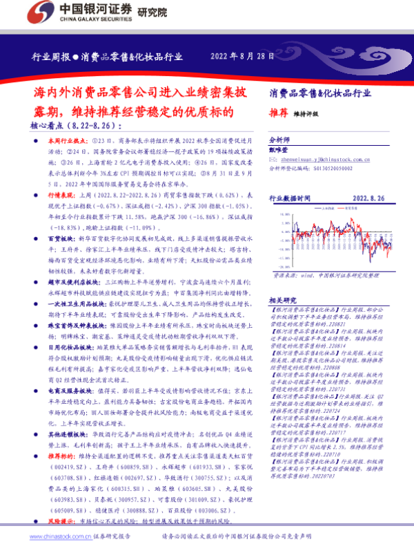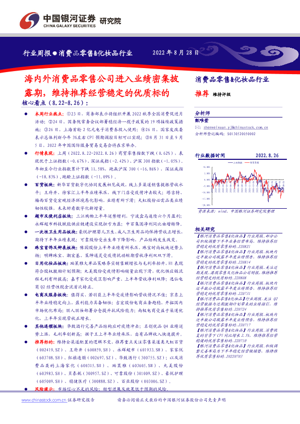 【银河证券】【20220828】消费品零售&化妆品行业周报-38页