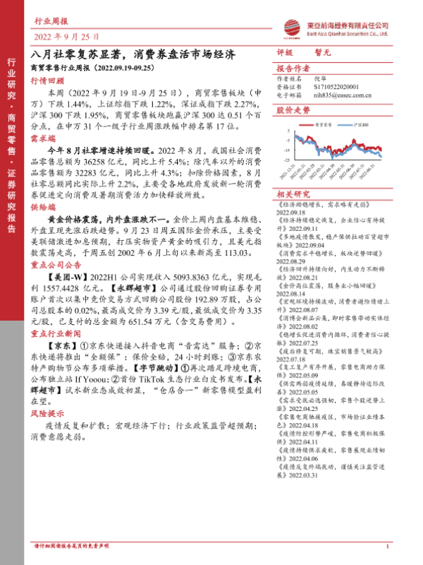 【东亚前海证券】【20220925】八月社零复苏显著,消费券盘活市场经济-16页