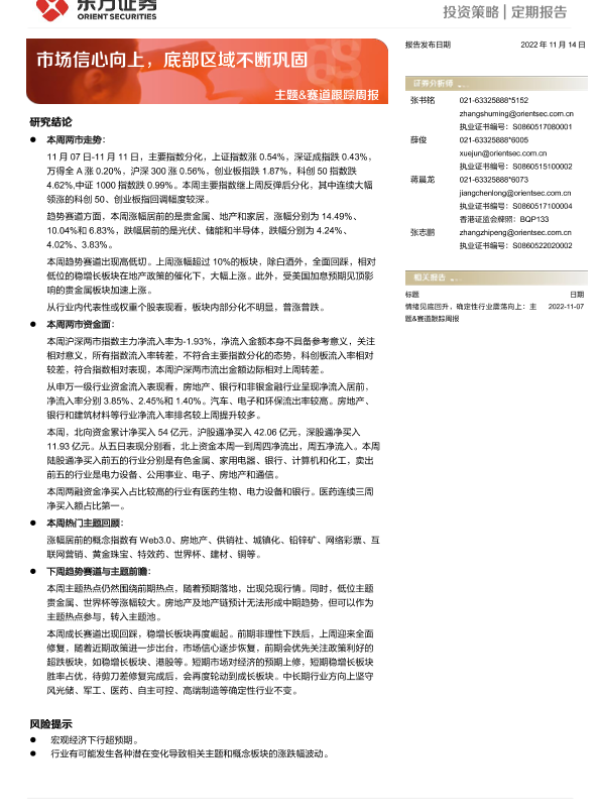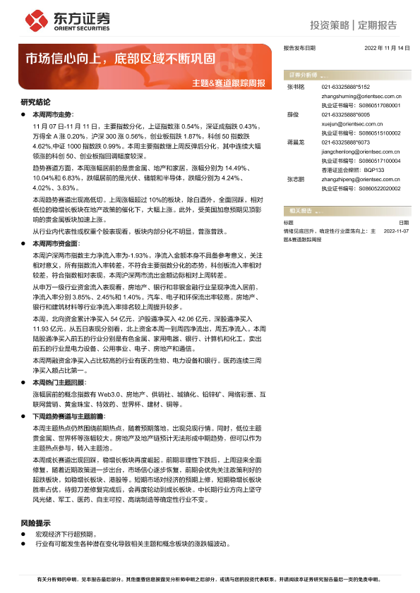 【东方证券】【20221114】主题&赛道跟踪周报:市场信心向上,底部区域不断巩固-15页