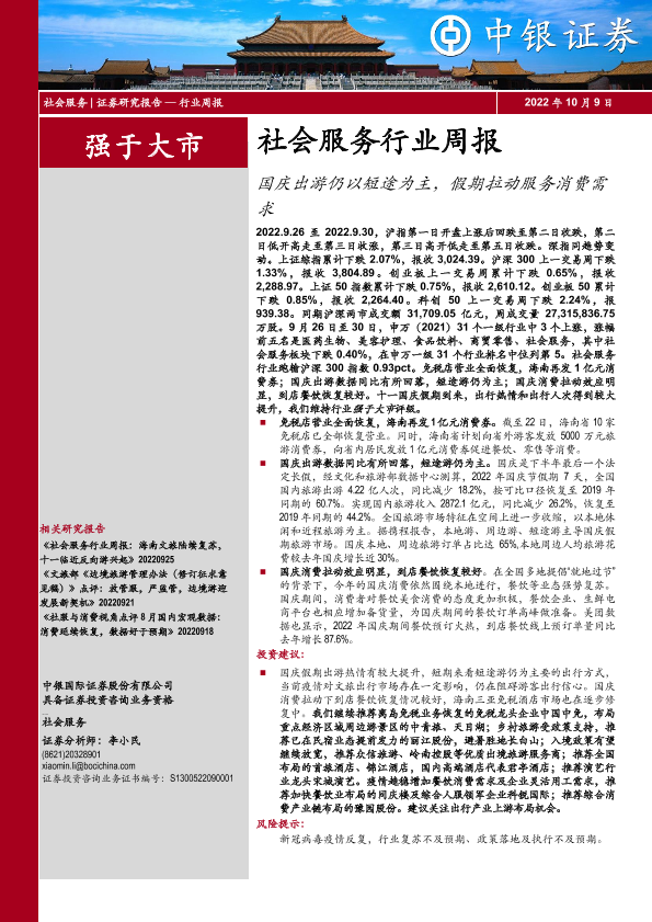 【中银证券】【20221009】社会服务行业周报:国庆出游仍以短途为主,假期拉动服务消费需求-30页