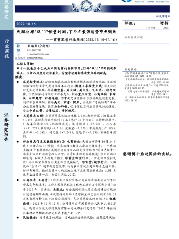【国泰君安证券】【20221016】天猫公布“双11”预售时间,下半年最强消费节点到来-10页