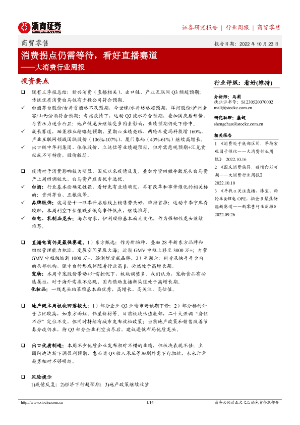 【浙商证券】【20221023】大消费行业周报:消费拐点仍需等待,看好直播赛道-14页