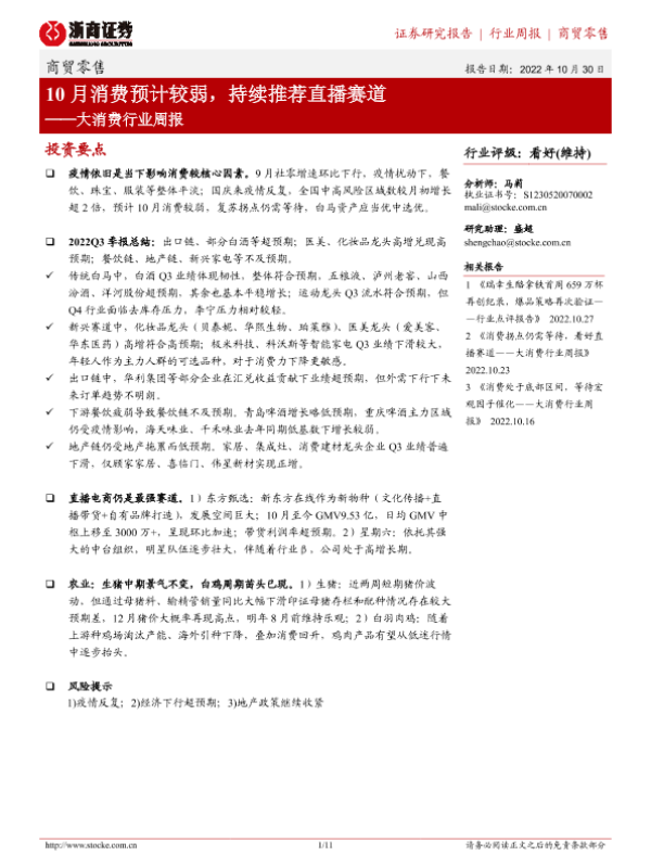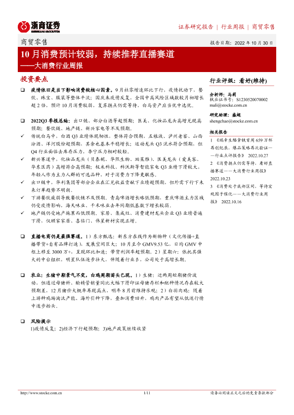 【浙商证券】【20221030】10月消费预计较弱,持续推荐直播赛道-11页