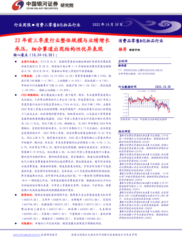 化妆品行业 消费品零售 疫情冲击 结构性优异表现 行业周报