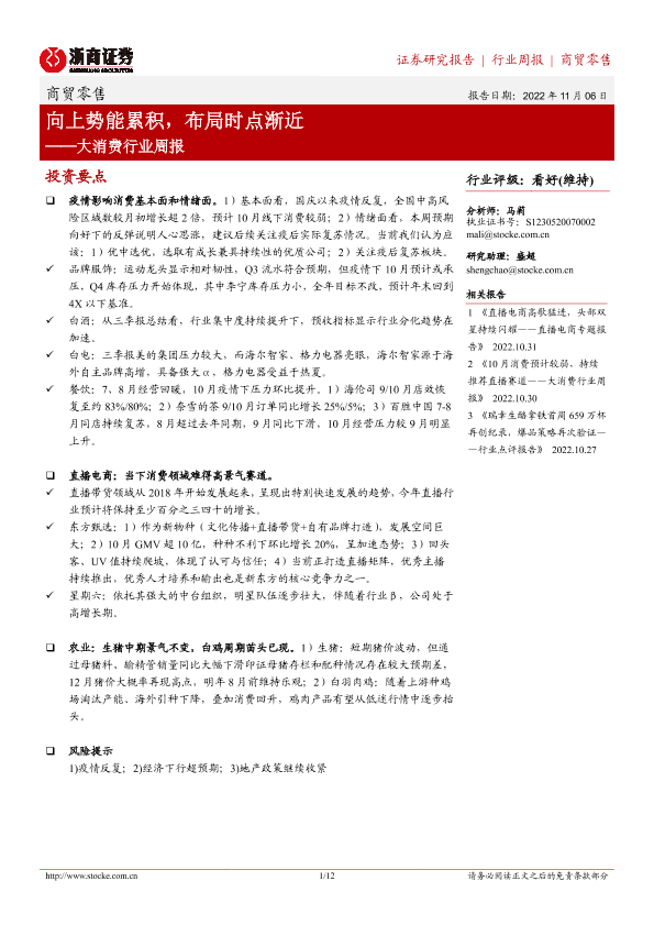 【浙商证券】【20221106】大消费行业周报:向上势能累积,布局时点渐近-12页