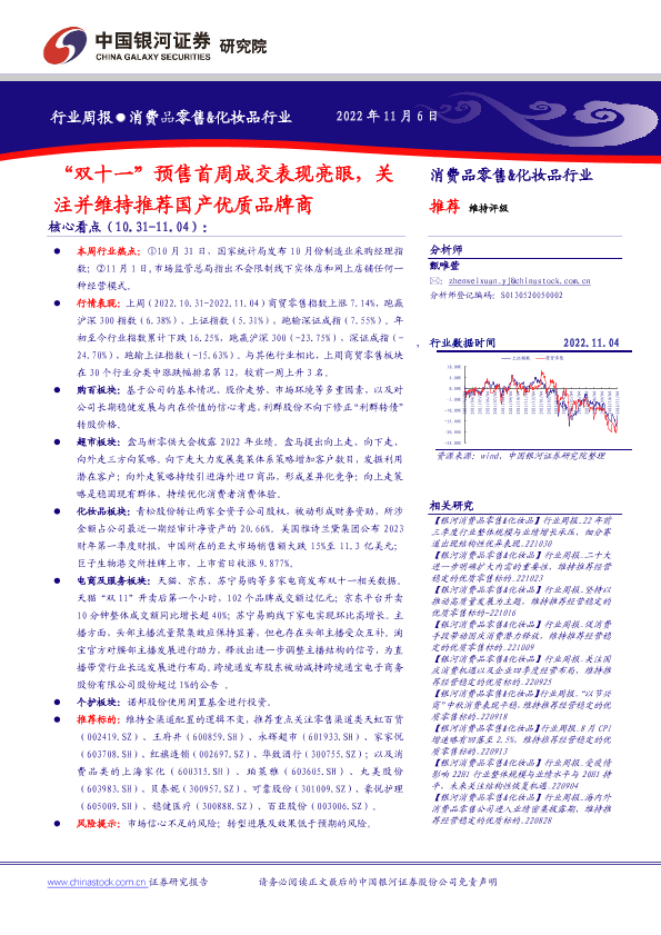 【银河证券】【20221106】“双十一”预售首周成交表现亮眼,关注并维持推荐国产优质品牌商-30页