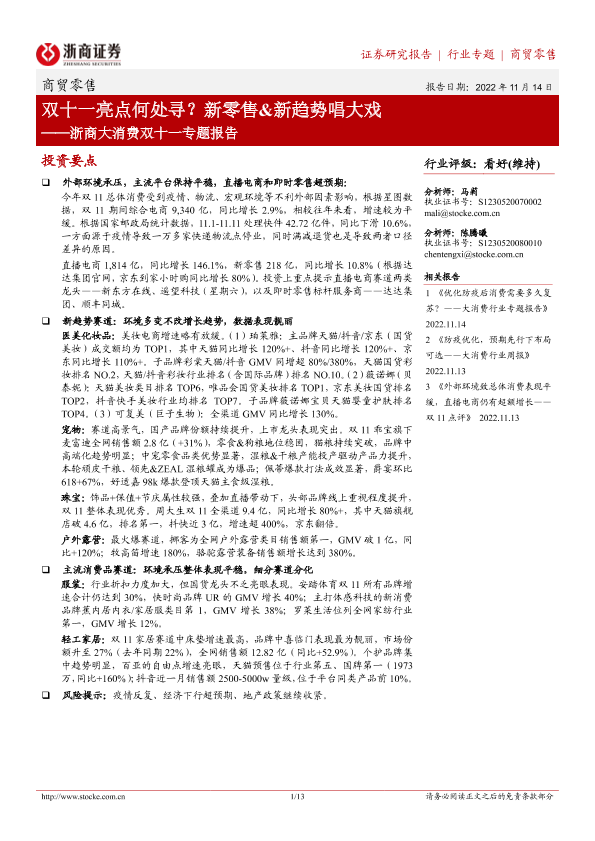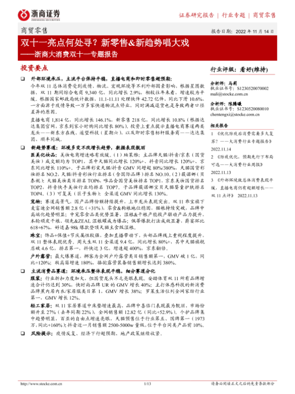 【浙商证券】【20221114】浙商大消费双十一专题报告:双十一亮点何处寻?新零售&新趋势唱大戏-13页