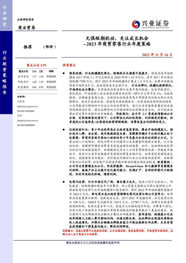 【兴业证券】【20221116】2023年商贸零售行业年度策略:无惧短期扰动,关注成长机会-25页