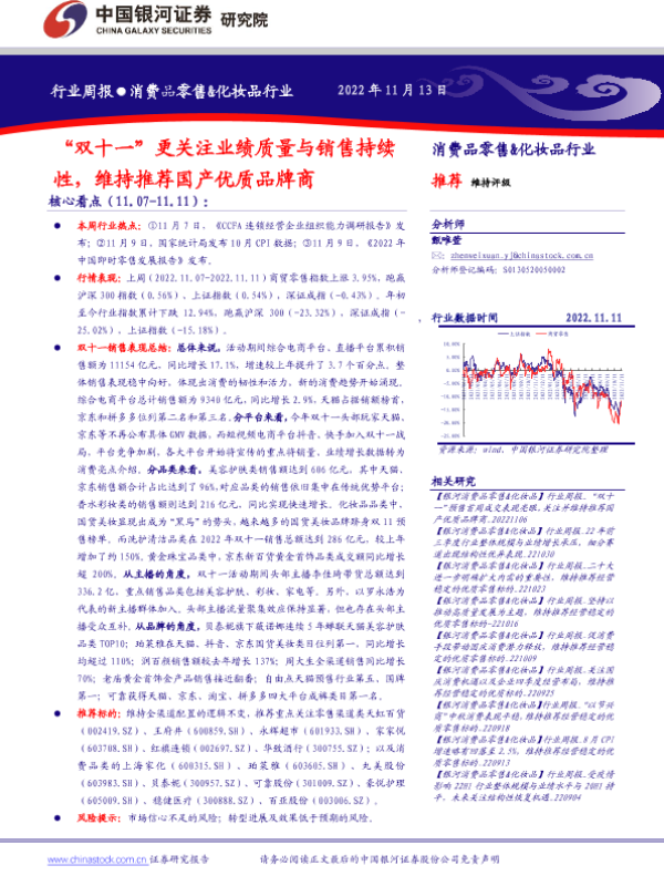 【银河证券】【20221113】“双十一”更关注业绩质量与销售持续性,维持推荐国产优质品牌商-32页