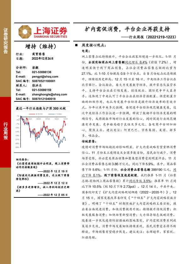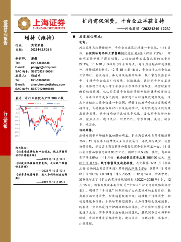 【上海证券】【20221226】扩内需促消费,平台企业再获支持-11页