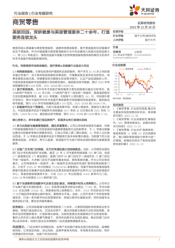 【天风证券】【20221230】商贸零售行业专题研究:美丽田园:深耕健康与美丽管理服务二十余年,打造服务连锁龙头-31页