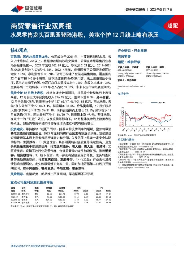 【国信证券】【20230117】商贸零售行业双周报:水果零售龙头百果园登陆港股,美妆个护12月线上略有承压-17页