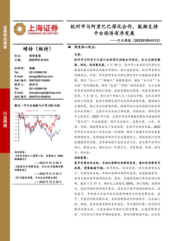 【上海证券】【20230115】杭州市与阿里巴巴深化合作,鼓励支持平台经济有序发展-13页