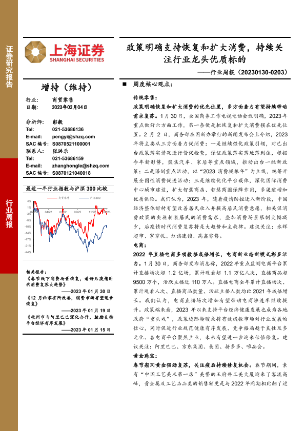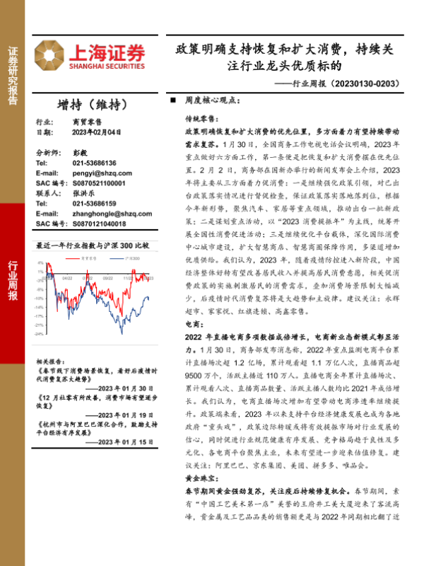 【上海证券】【20230204】商贸零售行业周报:政策明确支持恢复和扩大消费,持续关注行业龙头优质标的-13页