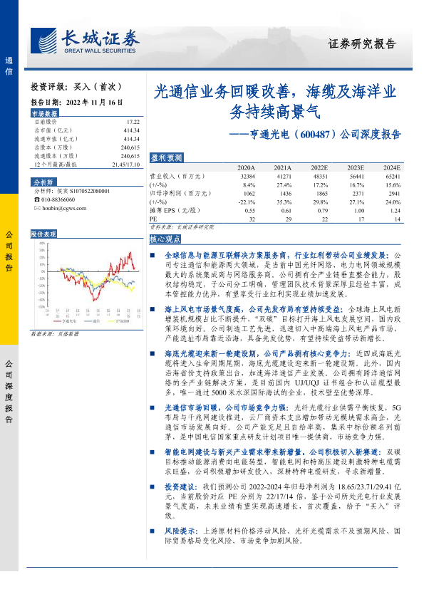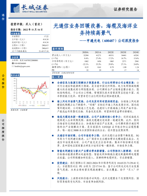 【长城证券】【20221116】亨通光电公司深度报告:光通信业务回暖改善,海缆及海洋业务持续高景气-32页
