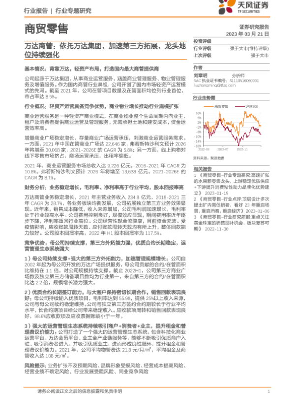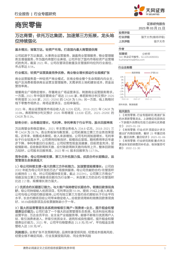 【天风证券】【20230321】商贸零售行业专题研究:万达商管:依托万达集团,加速第三方拓展,龙头地位持续强化-28页