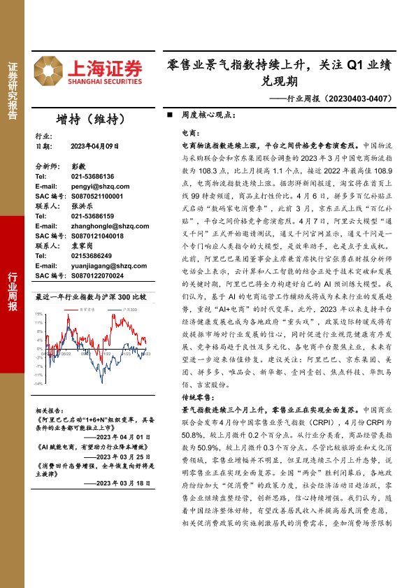 【上海证券】【20230409】商贸零售行业周报:零售业景气指数持续上升,关注Q1业绩兑现期-12页