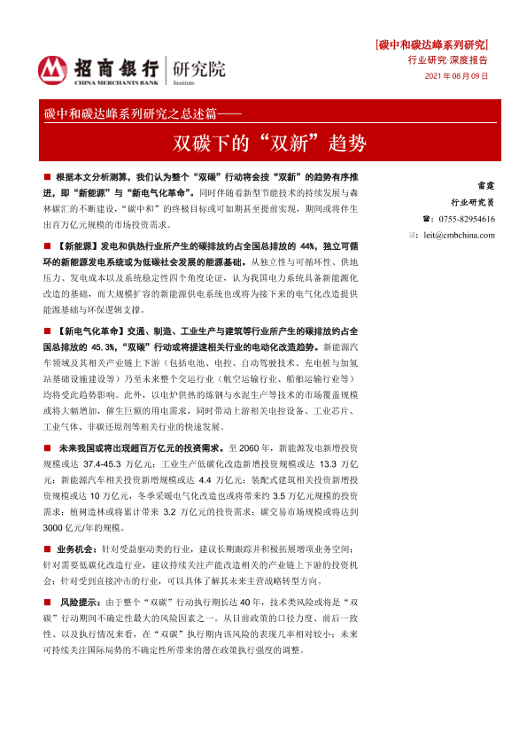 【招商银行】【20210809】新能源行业碳中和碳达峰系列研究之总述篇:双碳下的“双新”趋势-37页