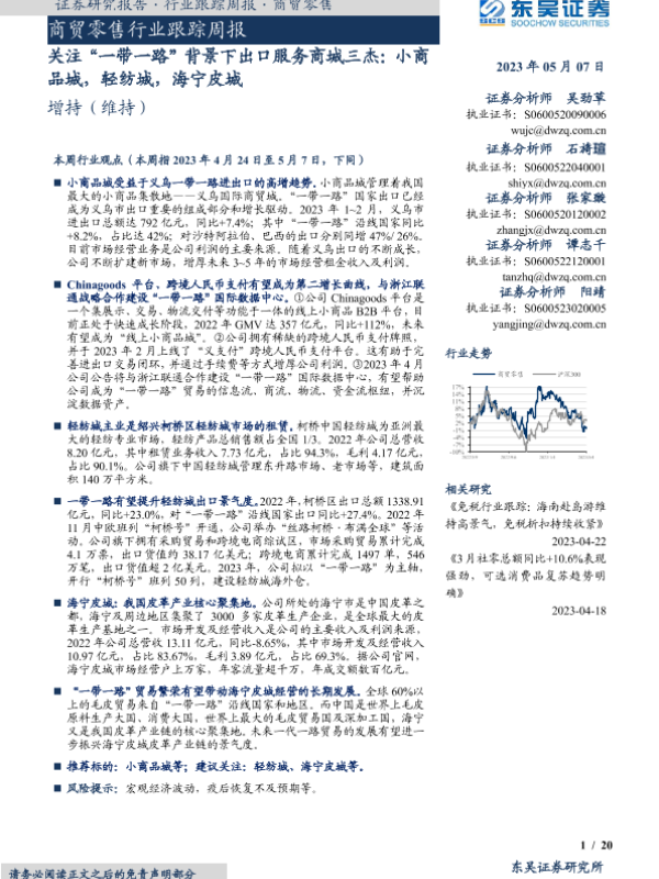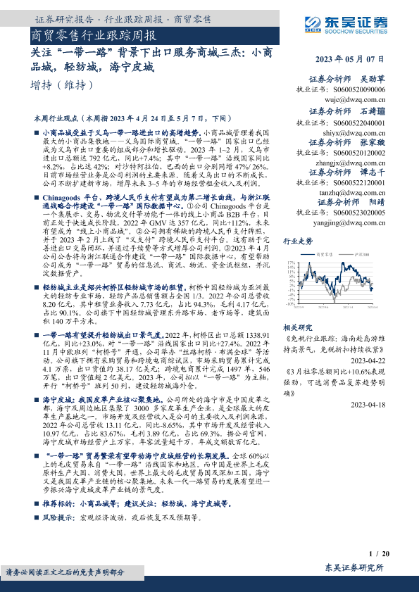 【东吴证券】【20230507】商贸零售行业跟踪周报:关注“一带一路”背景下出口服务商城三杰-20页